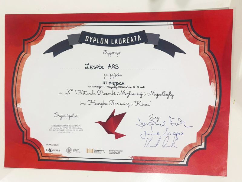 Podczas festiwalu znakomite wyniki osiągnęli nasi reprezentanci. Zespół Wokalny ARS z Zielonogórskiego Ośrodka Kultury zdobył III miejsce. Instruktorem zespołu jest Natasza Smirnowa.